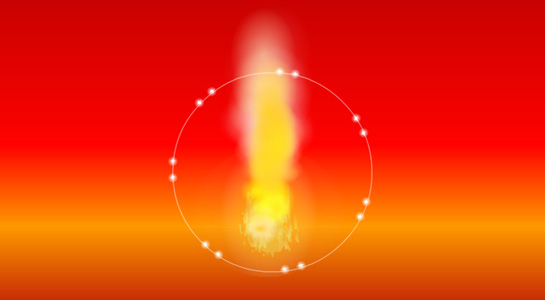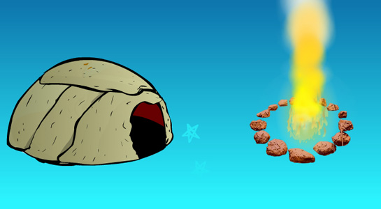 Pendant ce temps, Grand-Mère préparait l’animal. Elle dit à Glooscap : « Ramasse les sept étincelles qu’il reste des éclairs responsables de ta création et place-les au centre de la fosse. Prends sept morceaux de bois sec et place-les au-dessus des sept étincelles. Invite ensuite notre cousin la tornade, Wejosin, à se joindre à nous. » Glooscap fit ce qu’elle demanda, et Wejosin vint tourbillonner puis repartit. Les sept étincelles s’allumèrent sous l’effet du vent et les sept morceaux de bois se mirent à brûler. C’est ainsi que fut créé le premier feu ou le Chibouktou, comme nous l’appelons dans notre langue – le Feu du Grand-Esprit. Et c’est sur ce Feu du Grand-Esprit que Grand-Mère fit cuire l’animal, la martre. Ils partagèrent l’animal. Ils se régalèrent de viande pour célébrer l’arrivée de Grand-Mère dans le monde.